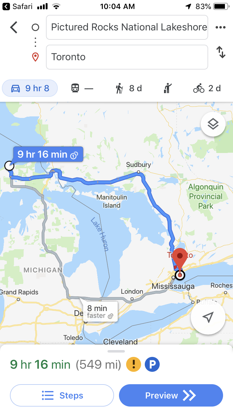 Our marked location is where we parked, the Travelodge in Clifton Hills. A hop, skip, and jump away from the falls.